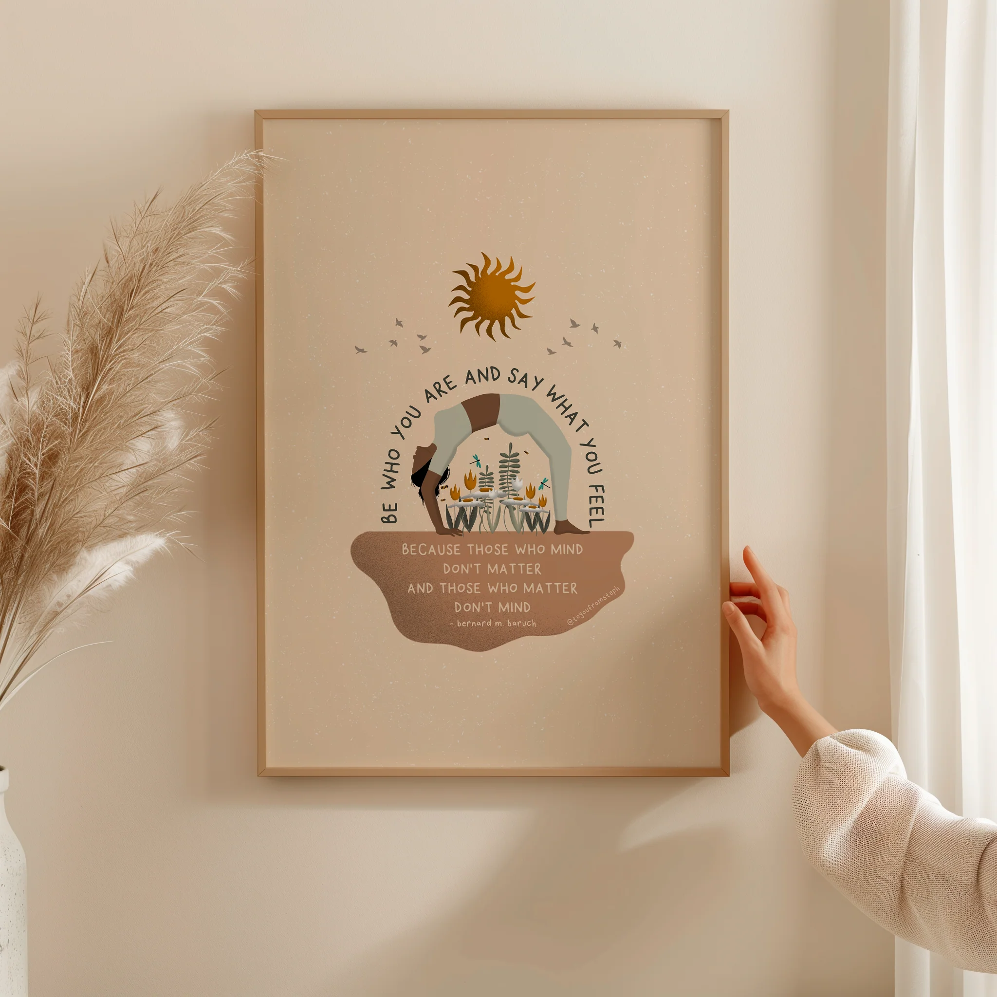 Elevate your home decor with this inspiring and motivational art print. This illustration features a powerful quote that is perfect for any woman's space. Printed on high-quality paper, this art print adds a touch of inspiration to any room. Transform your home into a haven of self-care with this beautiful print.