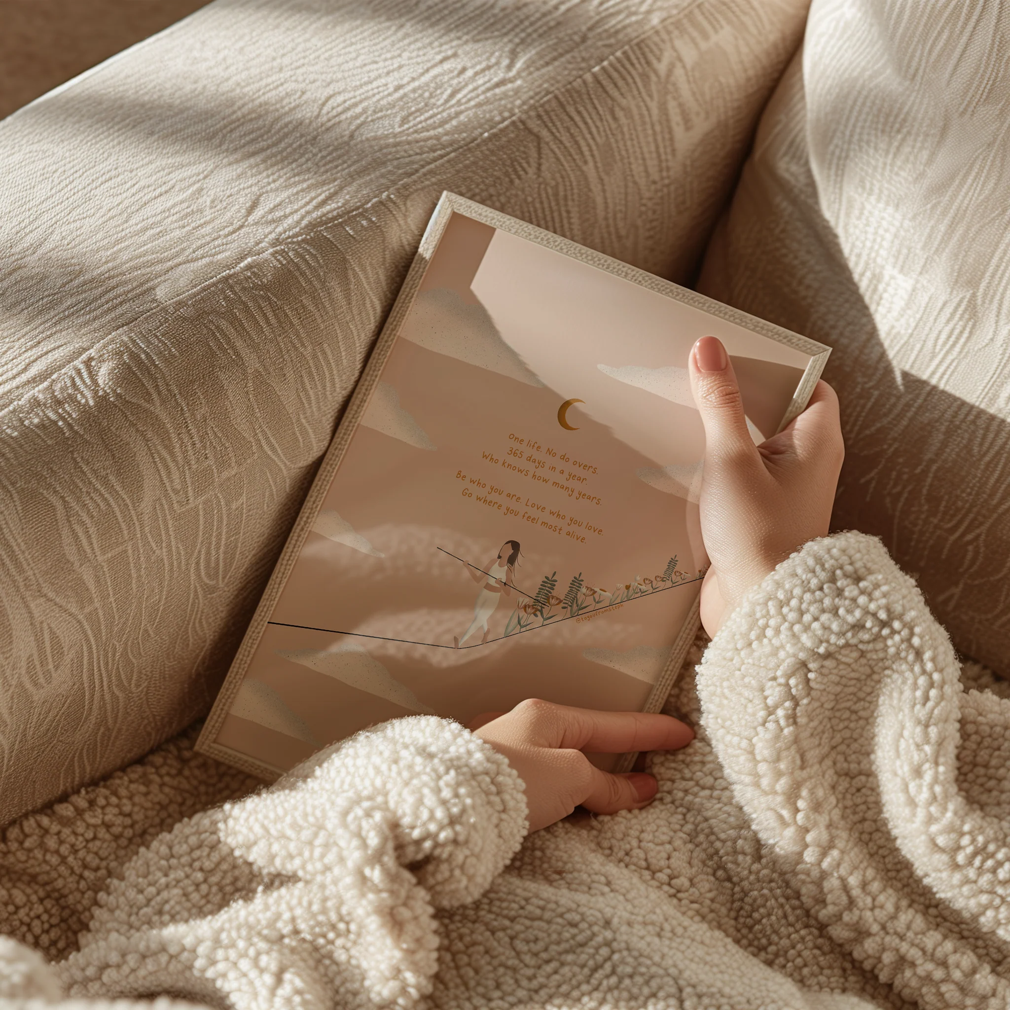 Elevate your home decor with this inspiring and motivational art print. This illustration features a powerful quote that is perfect for any woman's space. Printed on high-quality paper, this art print adds a touch of inspiration to any room. Transform your home into a haven of self-care with this beautiful print.