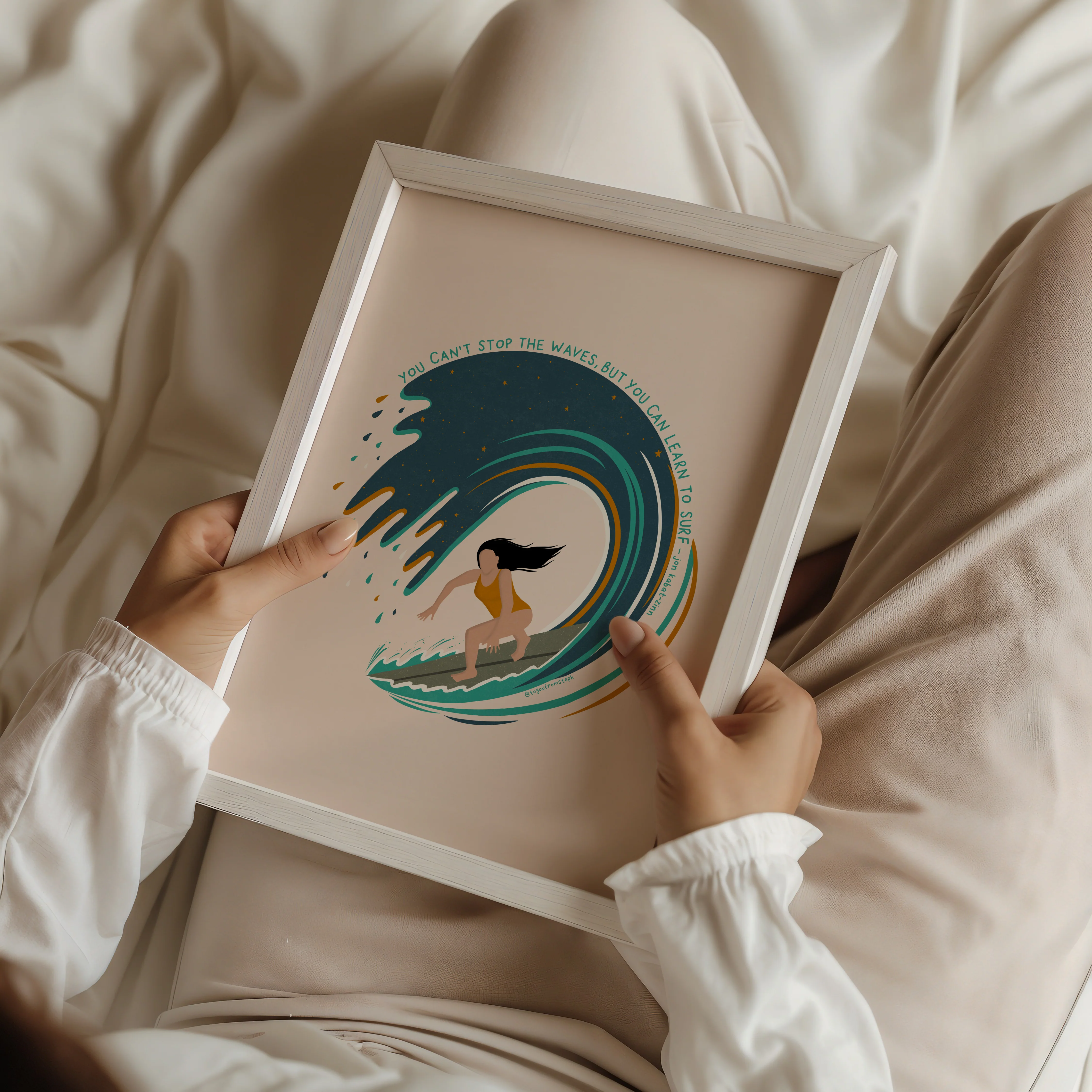Elevate your home decor with this inspiring and motivational art print. This illustration features a powerful quote that is perfect for any woman's space. Printed on high-quality paper, this art print adds a touch of inspiration to any room. Transform your home into a haven of self-care with this beautiful print.