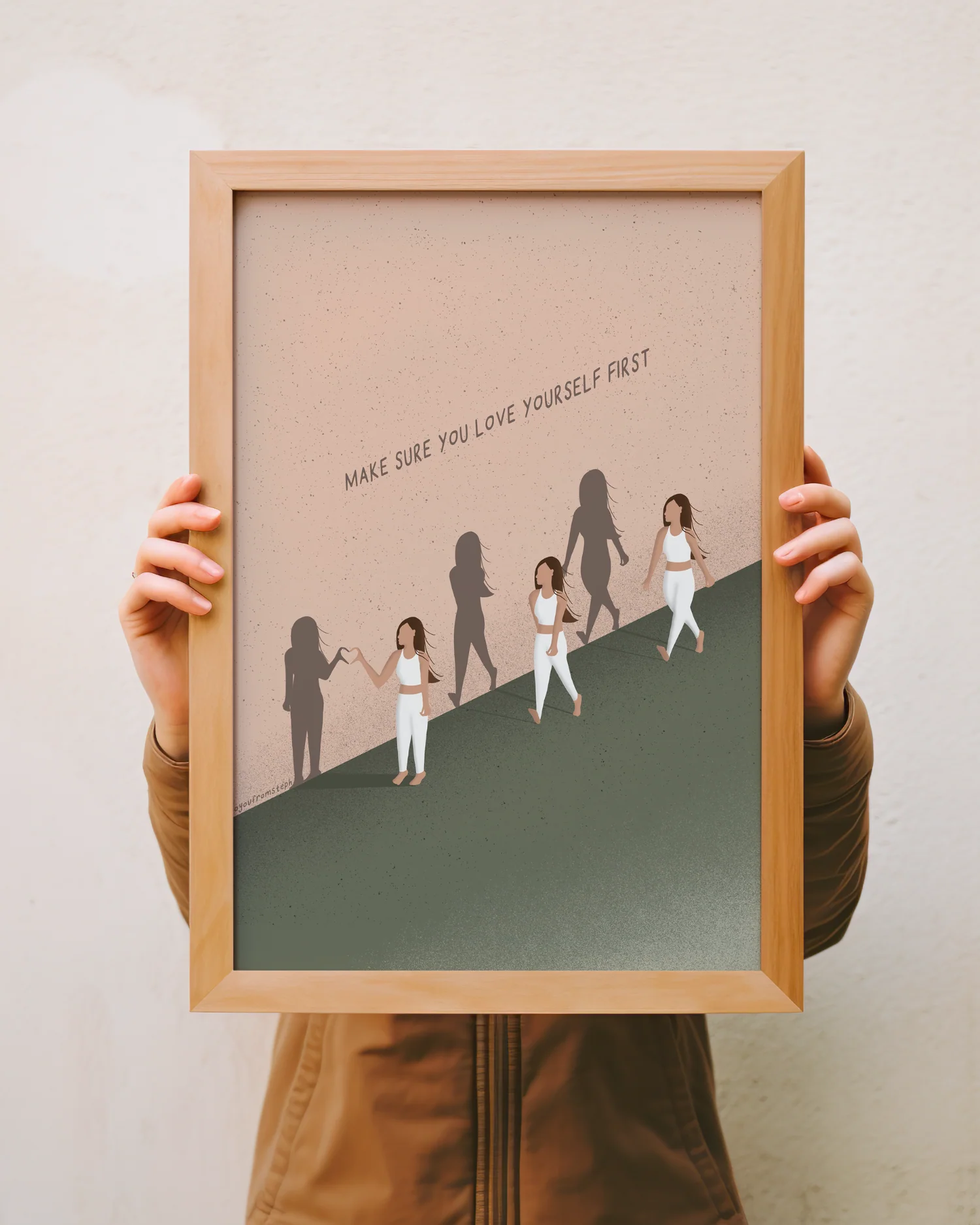 Elevate your home decor with this inspiring and motivational art print. This illustration features a powerful quote that is perfect for any woman's space. Printed on high-quality paper, this art print adds a touch of inspiration to any room. Transform your home into a haven of self-care with this beautiful print.