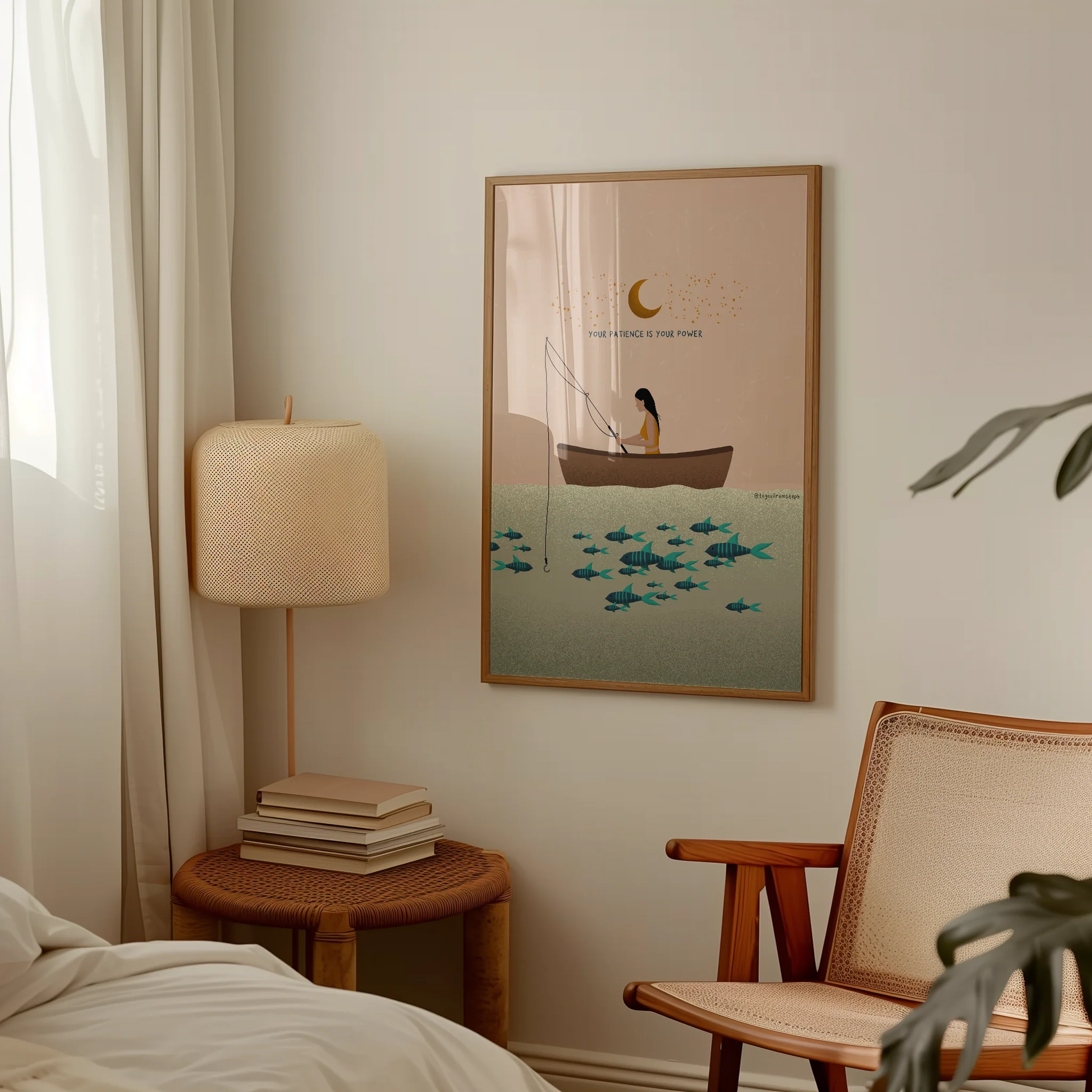 Elevate your home decor with this inspiring and motivational art print. This illustration features a powerful quote that is perfect for any woman's space. Printed on high-quality paper, this art print adds a touch of inspiration to any room. Transform your home into a haven of self-care with this beautiful print.